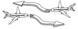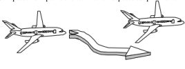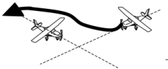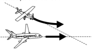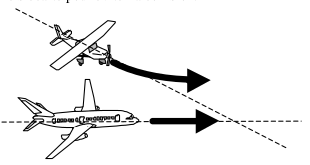 Route convergentes : la priorités étant à droite, l'avion non prioritaire s'écarte pour éviter la collision.